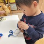 朝の会の後は、、毛糸まきまき~♪