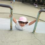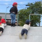 お山の滑り台の柵に手をかけて「たすけて~~!!」