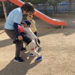 公園では、すべり台、バナナタグ、お相撲さんをして楽しみました