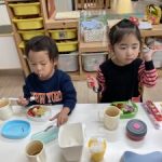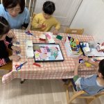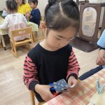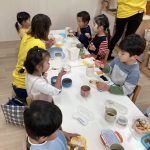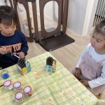 大きいお友だちは、ツリーの土台に色紙などを貼ります
