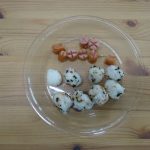*今日のお給食とおやつの鮭おにぎりとウインナー