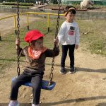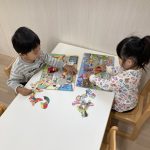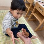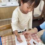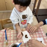絵の具の感触に笑顔の子どもたち(*^^*)