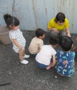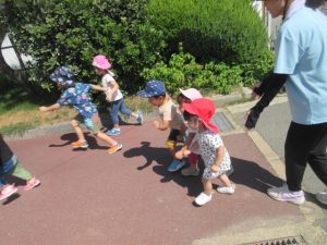 水分補給をして 日陰で遊ぼうね